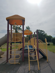 The pavilion was next to the playground but it was small with no tables or chairs, which was strange.