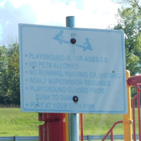The playground isn't anything amazing, but it's colorful and has some fun activities. The smaller play structure has some slides, a small bridge, a tic-tac-toe board, and some bars and poles. The larger play structure has slides, a bubble window, a maze board, a bridge, some spinning bars, and lots of bars and poles. There is also a modified teeter totter and a stand-alone rock wall. There are no restrooms here but there are picnic tables and benches scattered around.