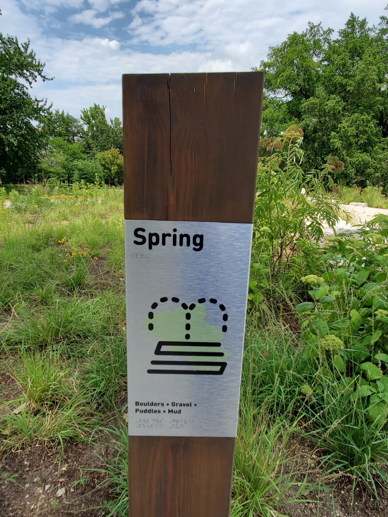It has 9 distinct areas to explore, they are upland prairie, young forest, gravel bank, bottomland forest, wetland, spring, sensory garden, meadow, and mound. Below are photos of each area. The park is open from 6 am to 10 pm daily. There are 3 entrances, one by the World's Fair Pavilion, one near Carr Dr., and one close to the Living World at the St. Louis Zoo.