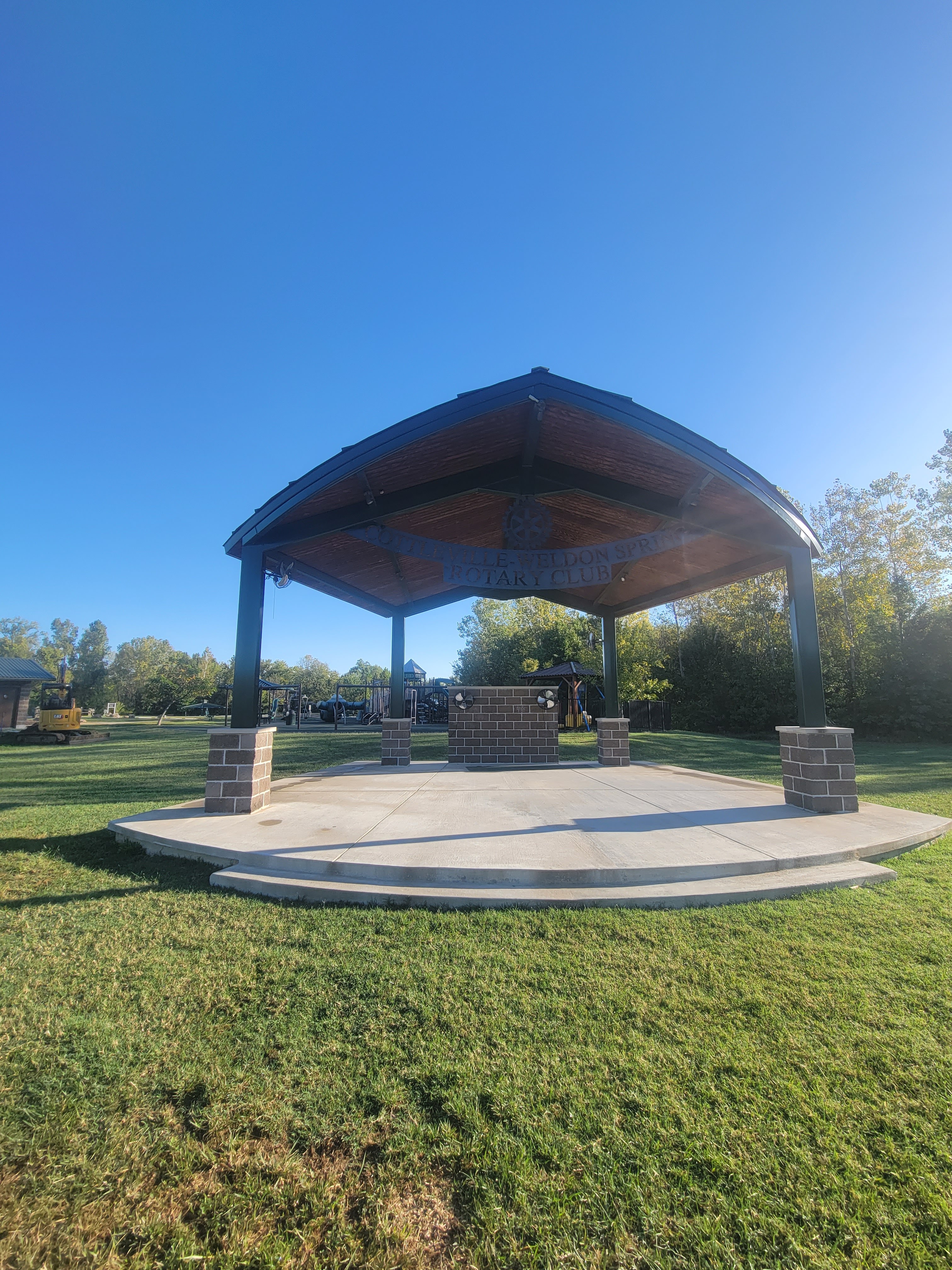 The newest playground was installed in 2025 at the Rotary Pavilion and is on astroturf.